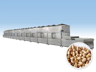 微波焙烤是將被加熱物料本身作為發熱體,微波的焙烤作用可以瞬時深入到物料內部,使物料內外同時受熱,不需要熱傳導的過程,所以溫升極快,大大縮短了加熱時間,所需時間一般為常規方法的1/4左右。近十多年來,微波能應用技術正被廣泛的應用于瓜子、花生、核桃、杏仁、開心果、板栗等干果的焙烤,以及花生、板栗的脫皮。與傳統的制作方式相比,微波能焙烤干果香脆可口、顆粒膨化飽滿、色澤自然、外形美觀、而且具有殺蟲滅菌作用,微波設備還可極大地改善處產環境,是企業實現文明生產、產品上檔次的理想選擇。