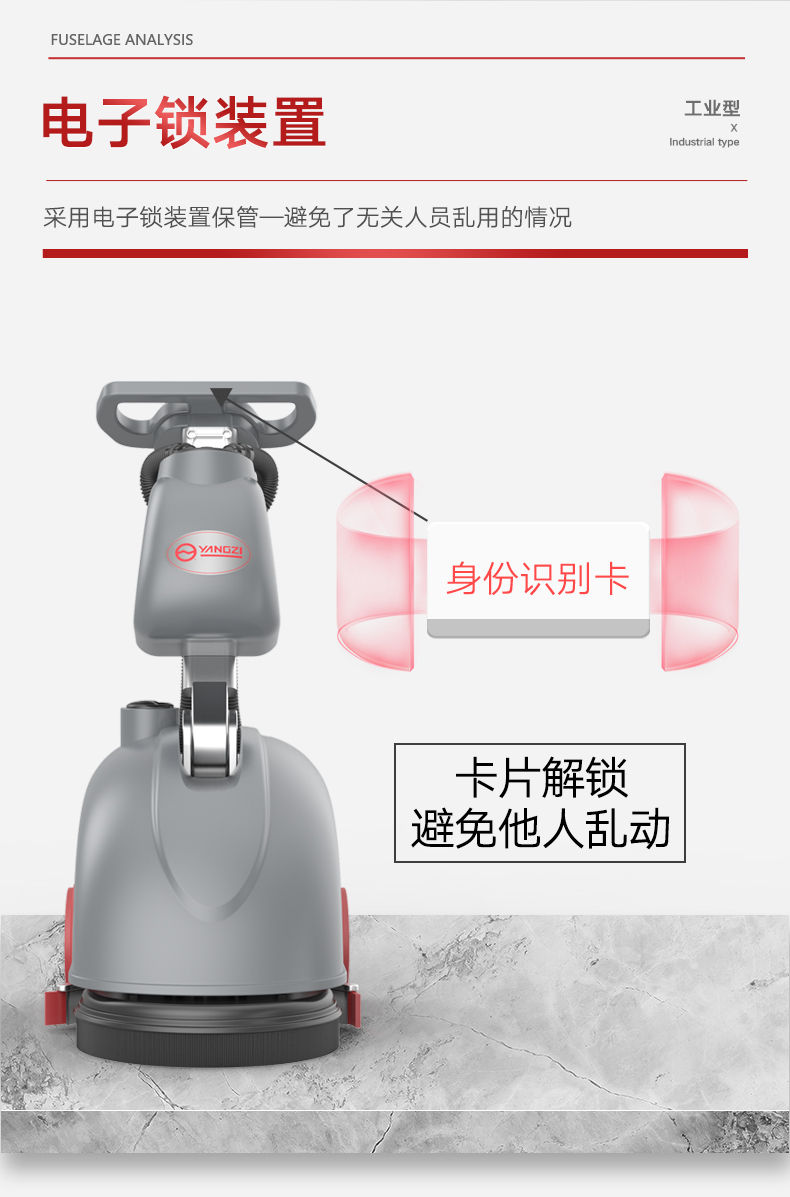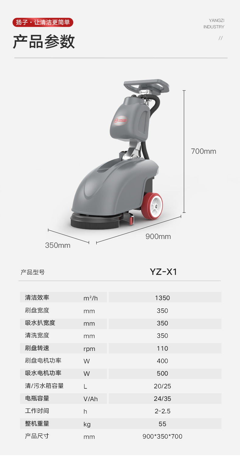 小巧方便易于折疊(高30公分,可適用于桌子底下清掃);保潔專用洗地機 老人專用洗地機 簡單易推 揚子洗地機 X1電動擦地機在工作的時候音量大約為58分貝,噪音小,不擾人,適合于各種場合,尤其適合家用,保潔公司: