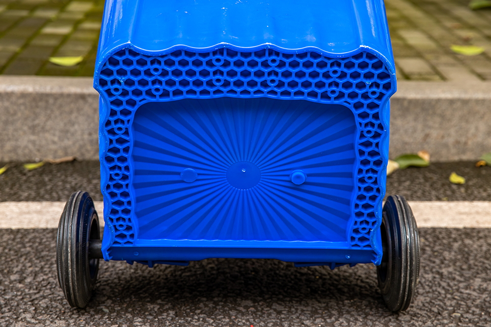 桶底采用加厚蜂巢及扇形加強(qiáng)筋設(shè)計(jì),還可添加耐磨釘?shù)瓤鼓p配件,牢固更耐用。