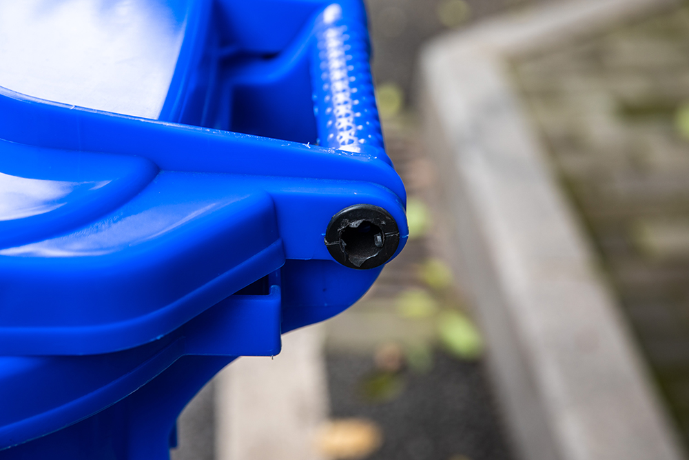 垃圾桶背部采用顆粒狀防滑把手設(shè)計(jì),使搬運(yùn)過(guò)程中減少滑倒幾率,不易脫手。尼龍材質(zhì)插銷更堅(jiān)固耐用順滑,輕松翻蓋不會(huì)造成卡殼等現(xiàn)象。