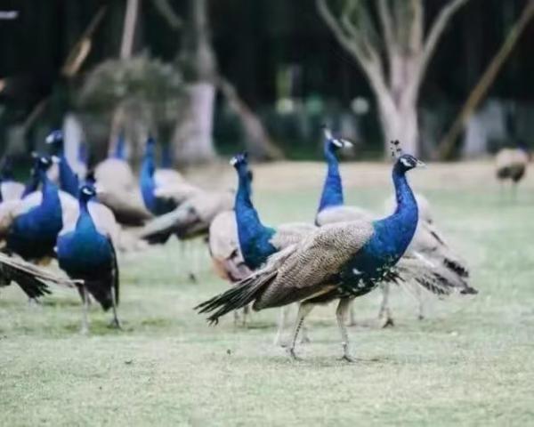 小朋友對(duì)孔雀印象很深刻,因?yàn)樗悄敲吹膬?yōu)雅迷人美麗。每年的三四月份是孔雀的求偶季,這時(shí)的雄孔雀?jìng)円呀?jīng)陸續(xù)重新長(zhǎng)出了華麗的尾上覆羽,一個(gè)個(gè)精神抖擻的尋找著自己的心儀對(duì)象,一旦發(fā)現(xiàn)心儀的那個(gè)"她",馬上就一邊展示它那五彩繽紛的尾屏,不斷抖動(dòng)著、摩擦著羽毛,發(fā)出"沙沙沙"的聲音,一邊還不停地做出各種各樣優(yōu)美的舞蹈動(dòng)作,以求得雌孔雀的芳心。孩子們看看美麗的孔雀,拍拍照,合合影,投喂投喂孔雀。
