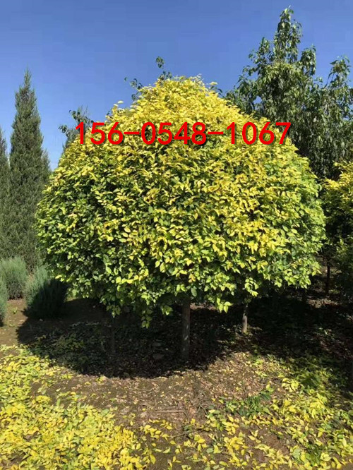 中華金葉榆,榆科榆屬,系白榆變種。葉片金黃色,有自然光澤,色澤艷麗;葉脈清晰,質(zhì)感好;葉卵圓形,平均長3-5cm,寬2-3cm, 比普通白榆葉片稍短;葉緣具鋸齒,葉尖漸尖,互生于枝條上。金葉榆的枝條萌生力很強,一般當枝條上長出大約十幾個葉片時,腋芽便萌發(fā)長出新枝,因此金葉榆的枝條比普通白榆更密集,樹冠更豐滿,造型更豐富。