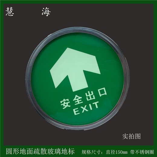 基本說明:該產品采用上8mm下5mm的雙層高強度鋼化玻璃,中間夾圓d=150mm夜光pvc標志,通過夾膠工藝制作合成一體,總尺寸:d=150mm,h=13mm,可按客戶要求加工、定制