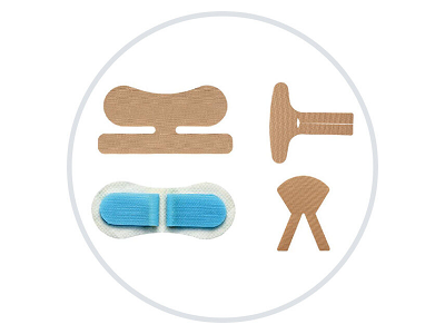 A 型由彈力布涂敷醫用壓敏膠,復合格拉辛離型紙制成,根據不同外形分為:A1型、A2型、A3型、A4型、A5 型。