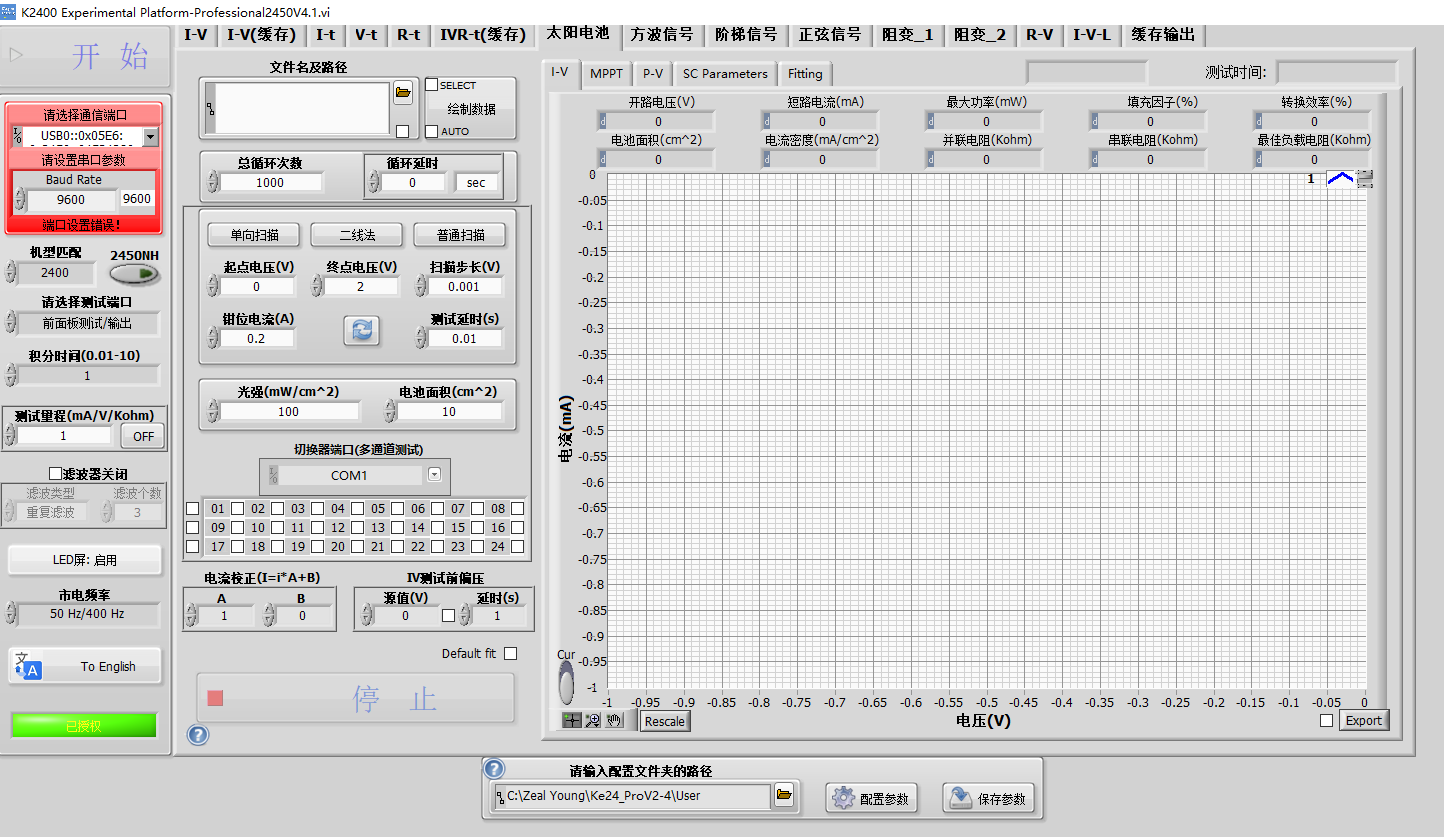 本軟件同時支持GPIB 卡和RS-232 串口,可用于 Keithley24xx 系列數(shù)字源表的電學(xué)輸出及測試。支持正反掃描、自定義掃描,數(shù)據(jù)導(dǎo)出等功能,支持 24 通道巡檢,支持電流校正和放電延時等,可測參數(shù)如下