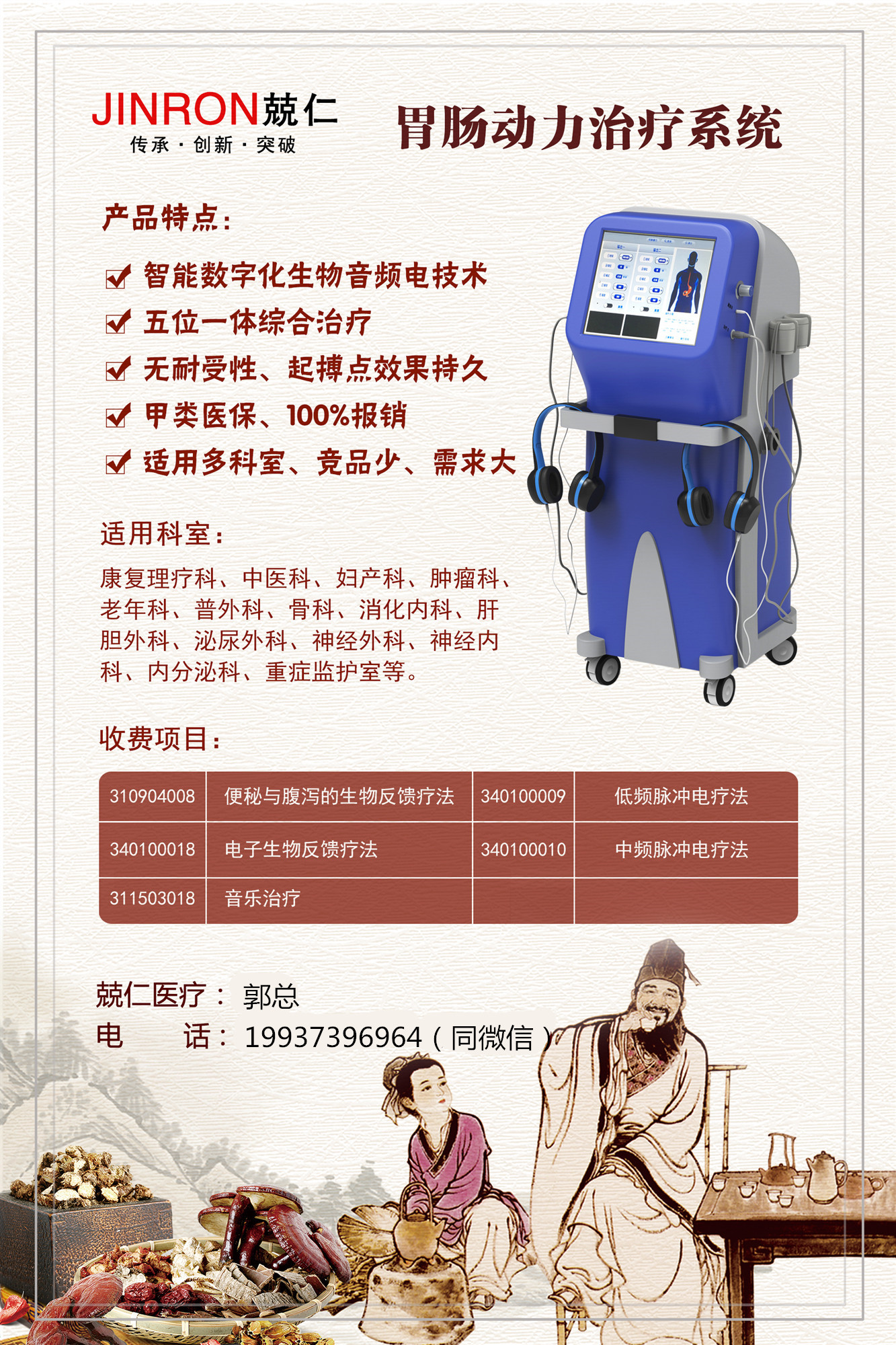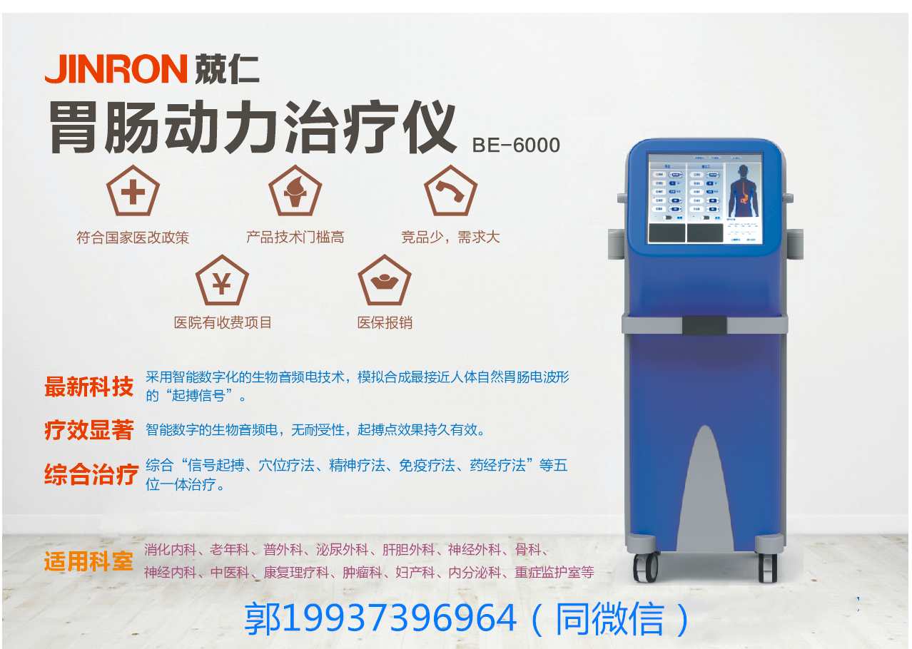 胃腸動力治療系統(tǒng)是采用高科技智能生物音頻技術(shù)、數(shù)字合成技術(shù),生產(chǎn)成特定胃腸生物起搏電信號,對胃腸起搏點(diǎn)進(jìn)行刺激起搏,結(jié)合專用起搏介質(zhì),糾正異常胃腸電節(jié)律,抑制異位起搏點(diǎn)的電活動,來治療各種功能性胃腸疾患的儀器。