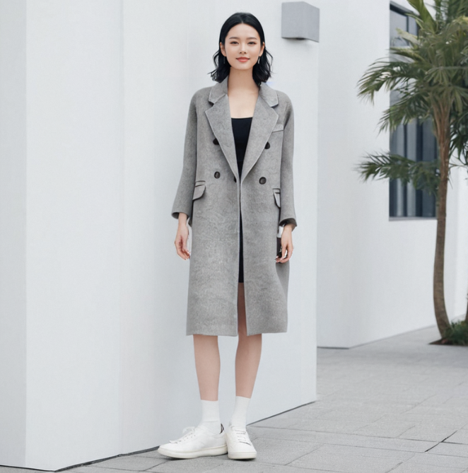 溫碧霞自創IRENENA服裝秋冬新款韓版毛呢外套灰呢子大衣