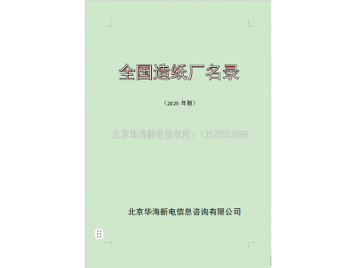 編輯說明 本書由從事信息收集工作的北京華海新電信息咨詢 有限公司核實整理,通過參考工商、統計、行業協會等有關權威部門的相關資料等多種渠道,再經由我公司信息部人員認真核對、整理、更新、添加,屬實時更新,但由于企業 信息瞬息萬變,在本公司信息員逐一核實期間和出版期間,會 有一定的人員變動或電話更改,致使本書中所列企業信息的準 確率不能達到 100%,敬請廣大用戶給予諒解和批評指正,歡迎提供反饋信息,以便我們及時糾正。 造紙行業屬重污染行業,經過10多年的整合,數量已經不多,規模比較大,我們整理了5000家左右的造紙企業。生產品種:瓦楞原紙,白紙板,廢紙漿,溶解漿,特種紙,印刷紙,生活用紙,南金紙,宣紙,薄頁紙,紙箱,紙制品,資料包含:企業名稱、企業地址、企業法人、企業聯系人、聯系方式、傳真、企業經營范圍 歡迎提出您的寶貴意見!