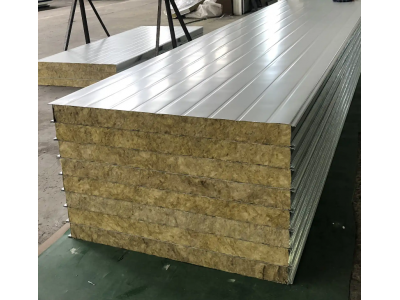 彩鋼巖棉夾芯復(fù)合板是彩色鋼板為面層,巖棉,防火,阻燃的保溫材料作芯層的xin型建筑材料