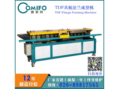 TDF法蘭適合于截面面積不大的通風管道,密封性好,成本低。配備16對成型輥輪,2個成型工位。法蘭高度有20mm,34mm和40mm三種。標準工位用于制作TDF共板法蘭,輔助工位用于制作法蘭卡碼(法蘭夾)。即一邊成型法蘭,一邊成型卡碼,達到一機雙能。外形精致美觀,可帶到施工現場使用,尤其適合亞洲、澳洲和美洲市場。與康美風卡碼刻痕機和卡碼扳手配合使用,無需剪切成型后的卡碼,減少卡碼變形,使用康美風卡碼扳手可加快卡碼安裝速度。