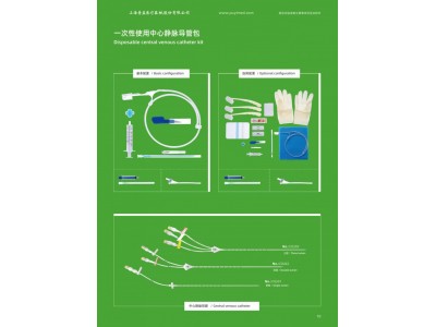 產品基本配置:導管、導引導絲、Y型穿刺針或穿刺針+藍空針、擴張器、單通道延長管、多通道延長管、三通閥、肝素帽、破皮刀。