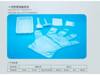 本產(chǎn)品由主要配置:膜手套、和選用配置:包布、衛(wèi)生紙、滑石粉、海綿刷、物品盒、醫(yī)用無布敷料、紗布?jí)K組成。產(chǎn)品應(yīng)無菌,經(jīng)環(huán)氧乙烷滅菌后環(huán)氧乙殘量應(yīng)不大于10ug/g.一次性使用