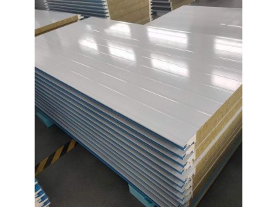 彩鋼巖棉夾芯板厚度與普通巖棉復合板類似,但寬度多固定為950mm,長度可裁剪。