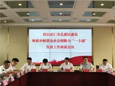 2019年6月18日,四川省眉山市惠民惠農財政補貼資金社會保障卡“一卡通”發放在仁壽縣正式首發補貼資金1.4億元,當天32萬5千余名農戶第一次通過社保卡領取2019年度耕地地力保護補貼。這是繼樂山市作為四川省惠民惠農財政補貼資金“一卡通”樣板推廣城市后,又一采用“系統+服務”模式僅用一個月就實現項目快速落地的地市。