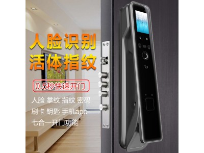 新款全自動智能指紋密碼鎖,人臉、掌紋、指紋、密碼、刷卡、鑰匙、手機app七合一開門方式,無需更換原門鎖體,安裝簡單。全自動指紋鎖采用鋅合金烤漆工藝,抗腐蝕性好。